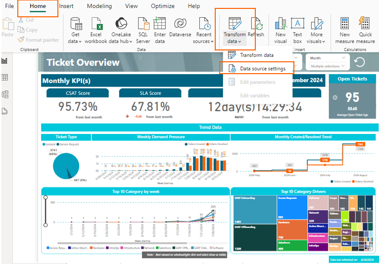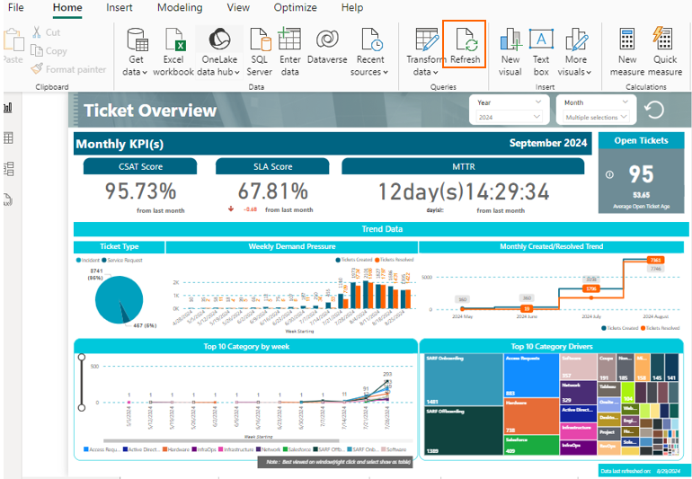 Click Save and OK, and then refresh the data to get the latest using the Service Desk JSON web token.