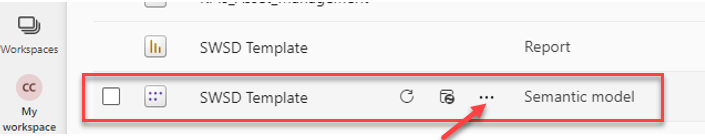 Click the ellipsis(…) option in Semantic model, and then click Settings.