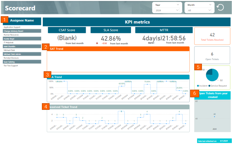 - Resolve groups are not implemented. Scorecard is currently by ticket analyst/assignee.
