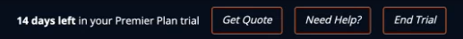 In a banner at the top of the application shows the number of remaining days available in the trial. From the banner the account owner can request a quote, request help, and end the trial.