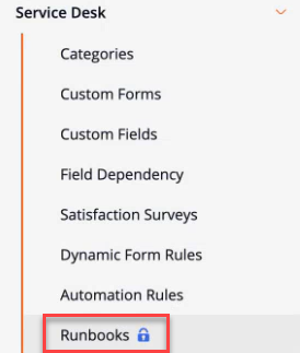 For example, navigation to Service Desk > Runbooks is not possible if visibility of Premier Features is disabled. However, by enabling visibility of Premier features, navigation to those features is available. In addition, administrators can click the locked navigation menu to recommend to an account owner that a premier trial be activated.