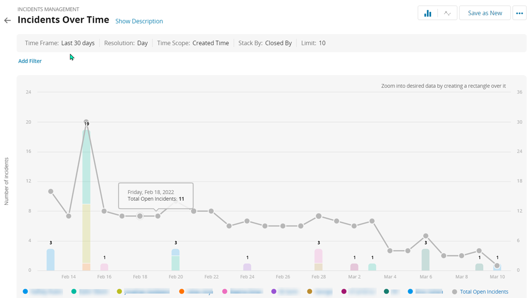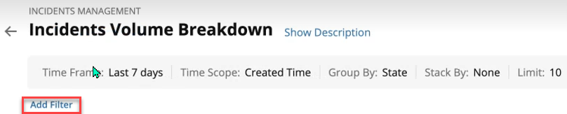 Incidents closed by first-touch resolution move to a Closed state and do not go through the Resolved state, but data in these two reports can still be grouped using the Stacked by parameter and the Closed by field.