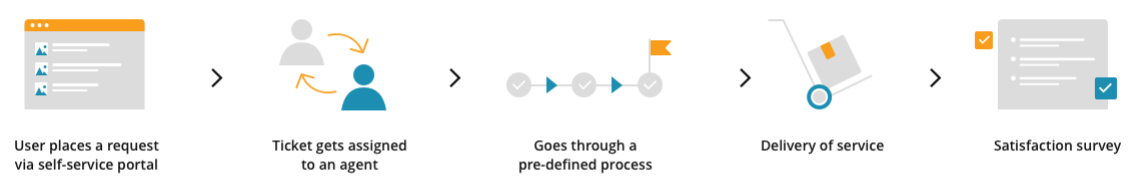 A service request is any request submitted by an end user to the IT service desk with the goal of initiating a service process. When a service request is received, the agent assigned does not start from zero. The solutions to standard requests are based on predefined workflows that vary in complexity. Whether simple or complex, workflows are standardized with a proven history to deliver services within predefined SLAs.