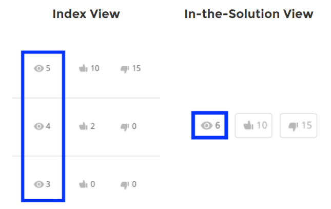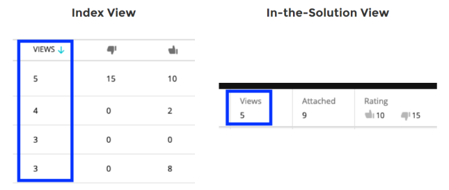 The Solution’s View Counter is shown both in the portal, for requesters, and in the platform, for agents and administrators.
