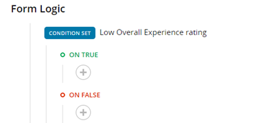Hover your mouse to the left of the new condition set name until a right-facing arrow displays. Click the arrow to expand the condition set and display the True/False actions.