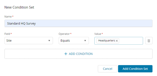 If you are going to survey only customers related to a specific site, you must already have that site set up, and users must be associated with that site before you begin creating your dynamic form rule.
