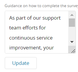 You can edit the text that provides your users with instructions on how to complete a survey. Just type the new text into the field under Guidance, and then click Update.