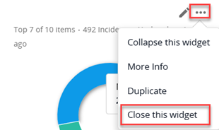 To delete any existing widgets you don't want on the dashboard, click the ellipsis icon in the upper right, and select Close this widget from the dropdown menu.
