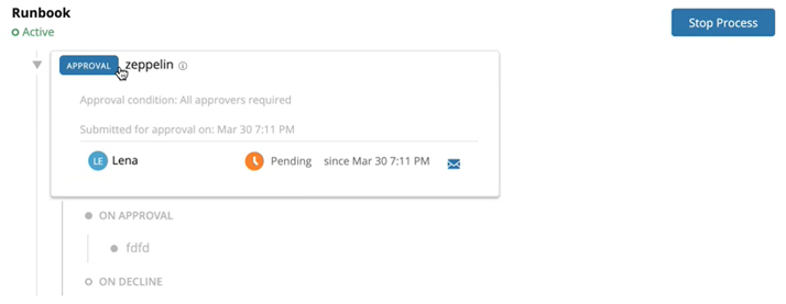 From the Process tab you can see the process and identify whether the process has finished running. For example, a process that requires an approval (that was not identified as a skip) is still running while it waits for the approval.   From the Audit tab you can see what occurred. From the Test Settings tab you can see the settings used.
