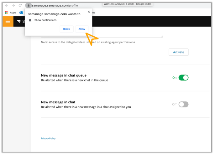 Agents are now able to get desktop chat notifications whenever there is a new message in an active chat, or when a new chat is added to the queue. This new feature allows you to be in another tab, away from the SWSD, and have this notification bring you back when needed.