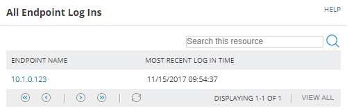 If successful, the Device Tracker User Details page is displayed for the user, showing the user's connections in the All Endpoint Log Ins widget.