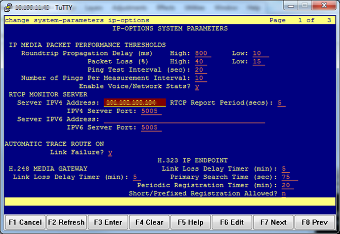 change system-parameters ip-options, press F3, and define the following settings:- Server IPV4 Address