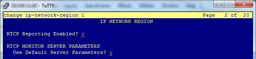 change ip-network-region [x]where [x] is the region number, and press F3. - Use F7 to navigate to the IP Network Region page.