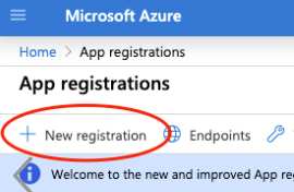 Click the New registration tab.   (Screenshot property of ©2021 Microsoft Corporation)