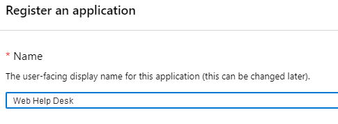Under Name, enter a display name for WHD. For example, you can enter Web Help Desk, as shown below.