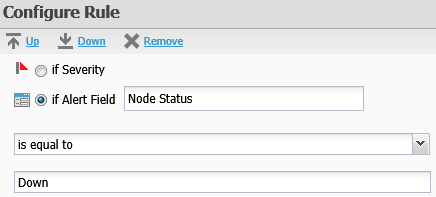 The figures below show an example of a matching rule that accepts the alert if the value of the Node Status field is Up.