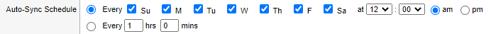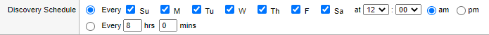 Determine how often Web Help Desk collects asset properties from all discovered endpoints. To disable automatic synchronization, select Every but do not select any days of the week.