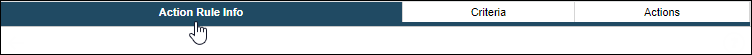 The Action Rules includes three tabs: Action Rule Info, Criteria, and Actions. The following sections provide details about setting up your action rule settings in each tab.