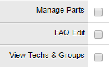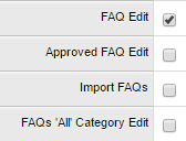 Select the FAQ Edit checkbox. This option allows techs to edit and create new FAQs. After you select the checkbox, additional options display.