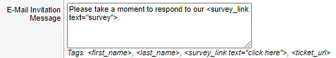 Enter a message used in survey invitations emailed to clients. These invitations are included in ticket email when the ticket is closed and the request type is associated with a survey.