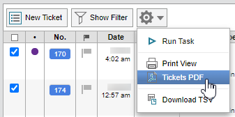 and select Tickets PDF or Download TSV to download a file format containing a list of tickets.