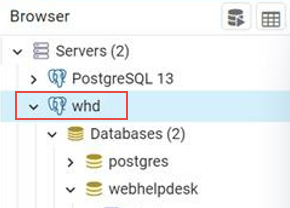 WHD also supports PostgreSQL 13.7 and 14.3 as external databases. If you choose to install a PostgreSQL database on an external server, perform the procedures in this section. When you are finished, back up the database.