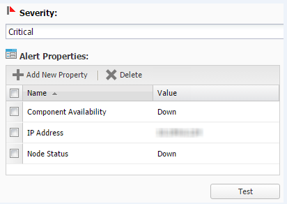 - Click Add New Property, select an alert field, and then enter the value.