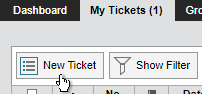 Click the My Tickets tab, and then click New Ticket.  You can also click New Ticket from the remaining tabs except the Dashboard tab. You can also click New Ticket from the remaining tabs except the Dashboard tab.