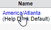 The following example displays multiple business zones with locations that span several countries. Each zone includes an identifying name and time zone. In this example, America/Atlanta is set as the default zone.