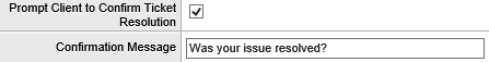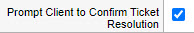 To close tickets based on the client response in the ticket email, select the Prompt Client to Confirm Ticket Resolution checkbox.