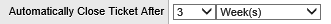 To automatically close tickets after a specific point in time, configure the drop-down menu options for the Automatically Close Ticket After option.