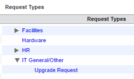 In this scenario, the server administrator submits a ticket using a request type created for upgrade requests. For example, the Upgrade Request type was added to the preconfigured IT General/Other request type.