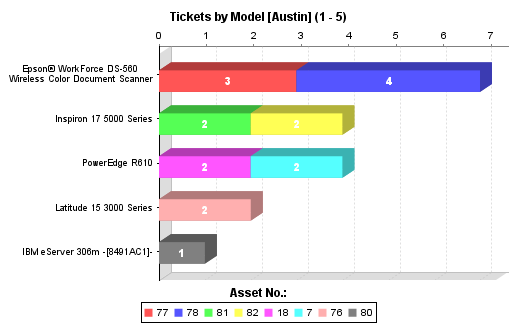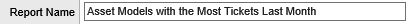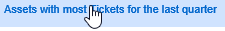 The following example makes changes to the assets with most tickets for the last quarter report. By default, this report shows the number of tickets for each asset during the past quarter. This helps you identify individual assets that generate a large number of tickets. Instead, the report will be modified to show which asset models generate the most tickets, and to show the information for the previous month.
