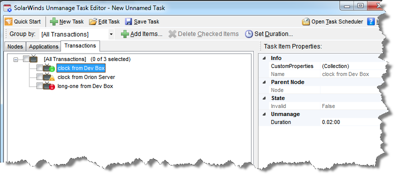 - In the SolarWinds Unmanage Task Editor: