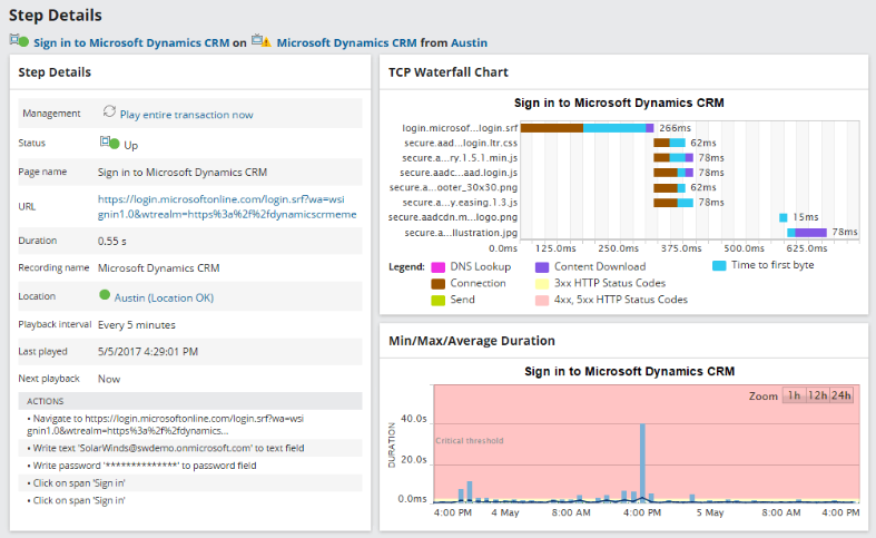 This view displays information about a selected transaction step. You can customize this view by adding or removing widgets, adding or removing columns in which widgets are displayed, changing the title of the view or any of the widgets on it, adding navigation tabs, and adding view limitations.