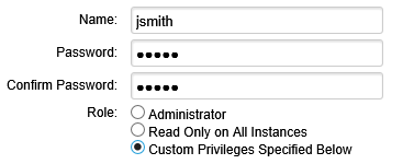 To assign privileges associated with predefined roles, select Administrator or Read Only on All Instances.