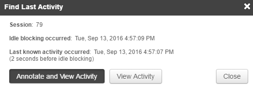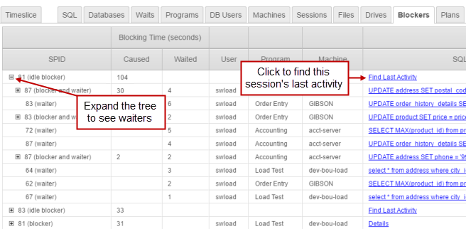 5. To find out what a blocking session was doing before it went idle, click Find Last Activity.