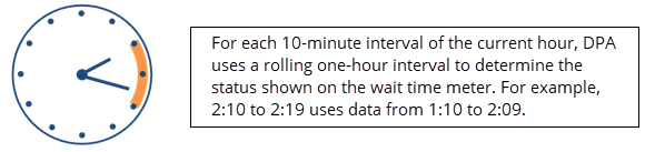 To determine if the wait time meter and hourly Anomaly Detection chart should show a warning or critical status for an incomplete hour, DPA uses the last 6 completed 10-minute intervals (a rolling one-hour interval). The status is updated every 10 minutes. For example, to determine the status of the 2:00 hour: