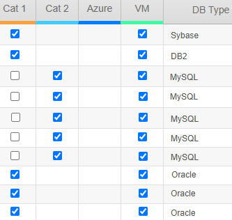 - Select the DBSH, DBSHDS, Cat 1, Cat 2, or Azure checkbox next to the instance.
