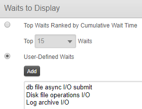 By default, the report includes the elements with the highest wait time. To include specific elements, select User-Defined, click Add, and then use the Search box to locate and add up to 50 elements.