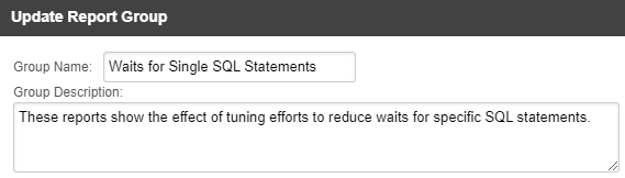 Click the name of the report to open the Update Report Group dialog.