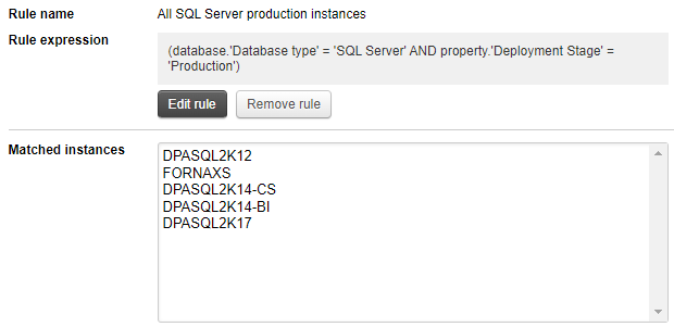 When you select a rule, DPA uses the rule conditions to determine which instances the alert monitors. If your environment changes, the list of instances is automatically updated.