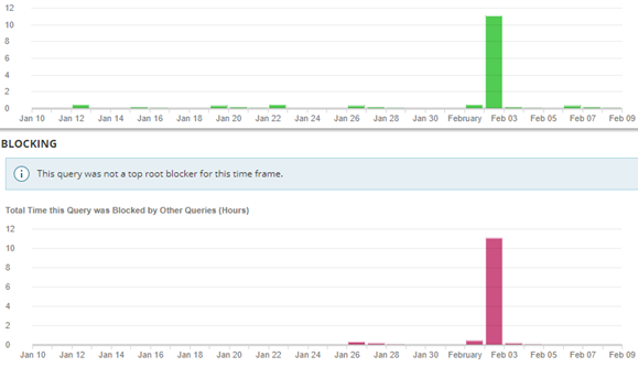 In this example, we can see that the SQL statement was being blocked by other queries when the anomaly occurred.