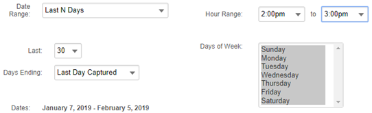 - Under Dates to Display, select Last N Days as the Date Range, and leave 30 as the number of days.