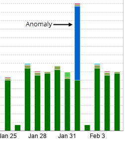 Click a bar that represents a day when anomalies occurred to display the Anomaly detection chart for that day.