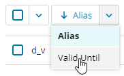 Sort by alias or expiration date. Click the down arrow to select the attribute you want to sort by. Click the sort button to reverse the sort order.