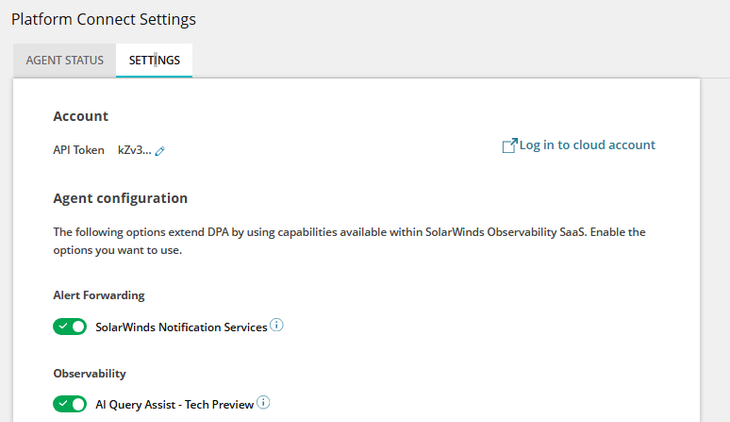See Connect DPA to SolarWinds Observability SaaS with Platform Connect to configure the connection.