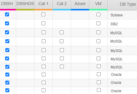 - Select the DBSH, DBSHDS, Cat 1, Cat 2, or Azure checkbox next to the instance.