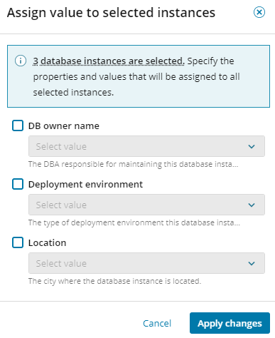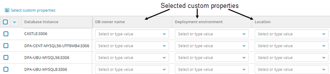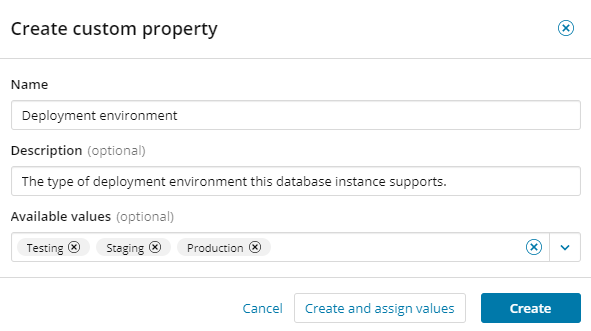 If a custom property applies to a database instance, assign the appropriate property values to that instance. You can assign multiple values for the same property.