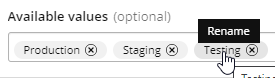 To add a value, type the value name in the Available values box and press Enter.